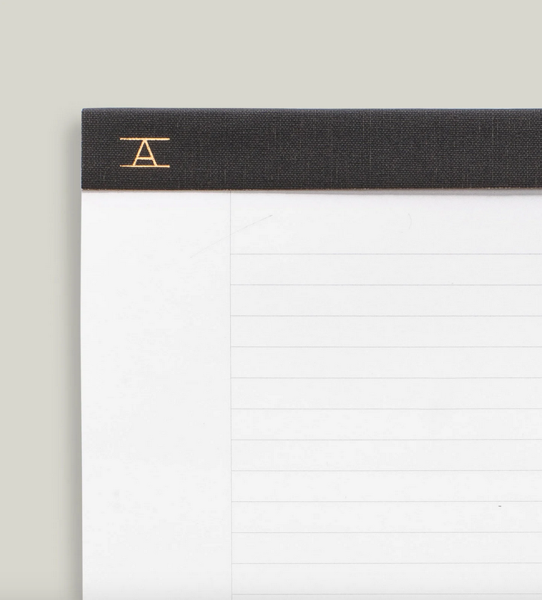 Appointed elevated the classic Legal Pad to create a beautiful, functional desktop essential. Designed with special details like Charcoal Gray bookcloth, gold foil stamp printing, and a heavy kraft backing suitable for writing on any surface. This classic lined format with with perforated sheets is ideal for taking notes, drafting an essay, mapping out a list of tasks, and more—welcome to your next workplace staple.