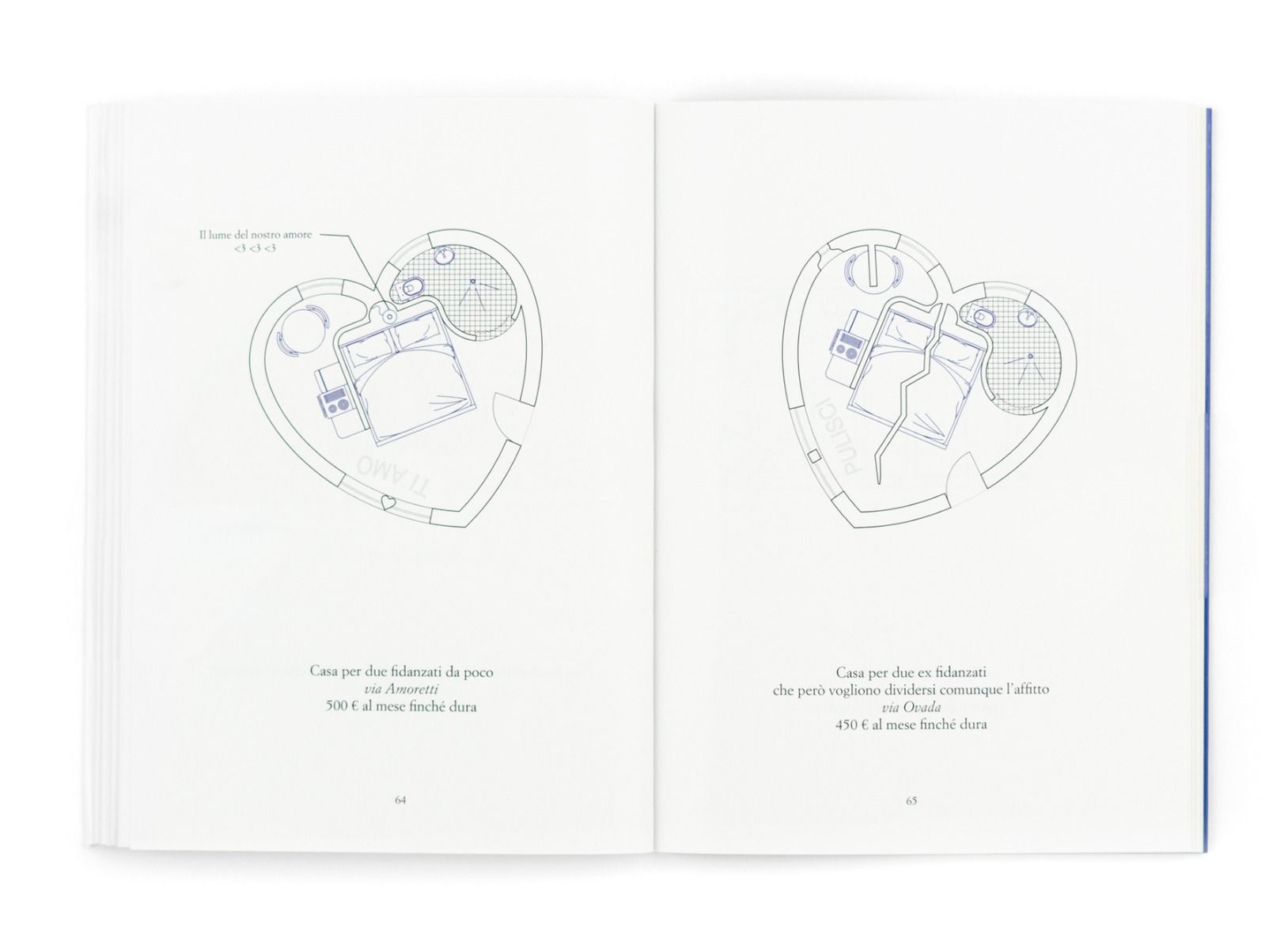 Intelligente, leggero e ironico Case Milanesissime è un compendio di piante surreali (o iperreali?) di appartamenti immaginari offerti in affitto o in vendita a Milano, come “Camera ricavata in intercapedine di facciata”, “Appartamento della Milano che non si ferma” con tapis-roulant continuo o "Casa per due ex fidanzati che però vogliono dividersi comunque l'affitto". Una satira serissima sul mondo della progettazione contemporanea e un elemento di riflessione sulla dimensione abitativa della metropoli.