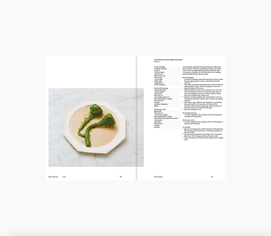 Atelier September: A place for day cooking è il primo libro di cucina dedicato al rinomato ristorante di Copenaghen, con ricette del proprietario Frederik Bille Brahe, che garantisce accesso esclusivo ai piatti più iconici di Atelier September. Ottantasei ricette offrono per lo più piatti vegetariani per colazione, pranzo, dolci e alimenti base, tra cui l'"Avocado mad", il tutto con un focus su ingredienti freschi e stagionali. Frederik realizza ricette per soffici pancake stile finanziere, zuppe e insalate di stagione e dessert al gusto matcha con la stessa familiarità che ha dato forma al suo primo libro più venduto con Apartamento, All the Stuff We Cooked. Un'introduzione e intermezzi poetici scritti da Frederik offrono uno sguardo sugli esordi e sulle ispirazioni culinarie di A.S., retroscena di quello che sarebbe diventato uno dei ristoranti più celebri di Copenaghen. A cura di Jeni Porter e con fotografie di Rasmus Weng Karlsen, Atelier September è una sorta di ritorno a casa, sia nei ricordi evocati da sapori familiari e oggetti meravigliosi, sia attraverso gli amici di sempre che stringiamo riuniti attorno a un tavolo.