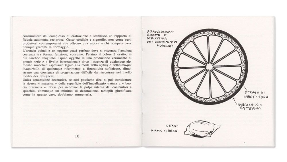 Riproposto da Maurizio Corraini e da Vanni Scheiwiller nel 1997 in occasione del novantesimo compleanno di Bruno Munari, in edizione fuori commercio, è stato edito dalla nostra casa editrice nel settembre 1998. Libro di grandissima importanza, che sottopone le forme della natura al giudizio ironico del designer, compie nel 2013 i suoi 50 anni. Un esempio di “good design”? L’arancia: “un oggetto quasi perfetto dove si riscontra l’assoluta coerenza tra forma, funzione e consumo”.