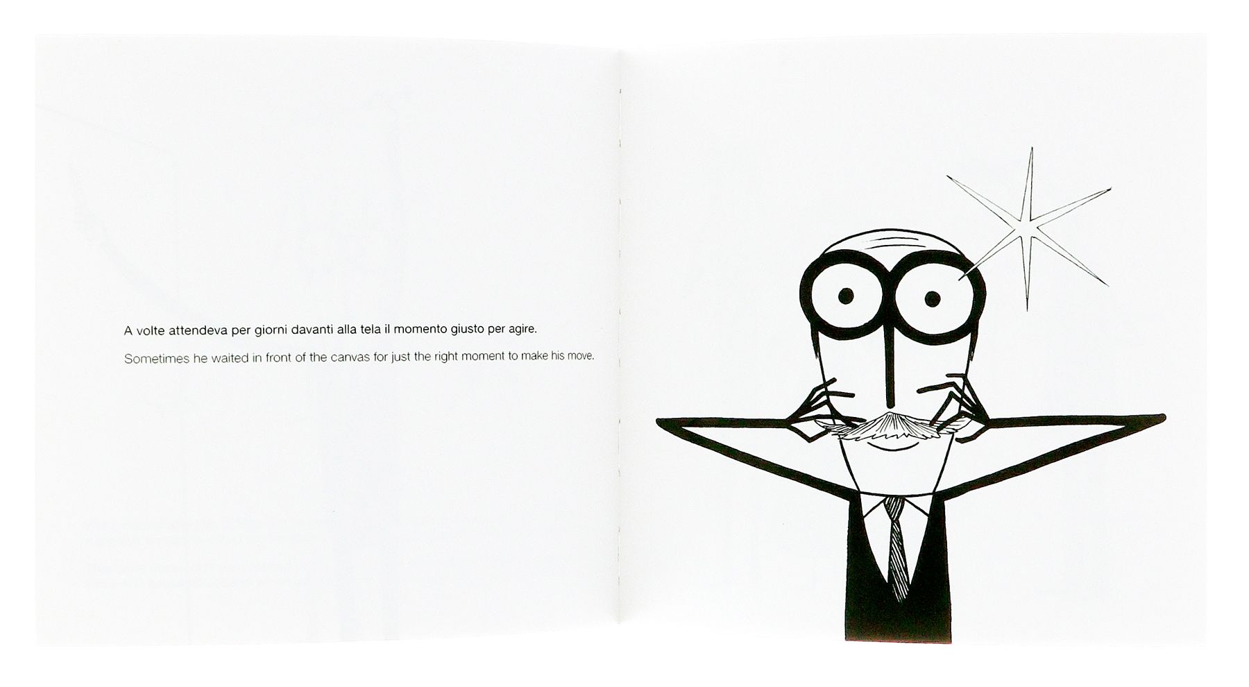 “Milano. Anno 1949. Lucio Fontana sta lavorando nel suo studio di corso Monforte. Non è soddisfatto di come sta venendo un quadro e quindi decide di distruggerlo. Prende una lama e... ZAC!”