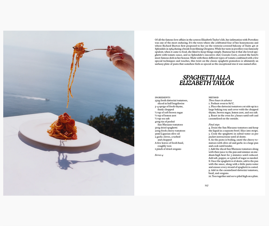 LIGURIA presenta 24 piatti classici ispirati alle cucine degli hotel Belmond di Portofino: Splendido, sulle colline che dominano la baia, e Splendido Mare, giù in piazzetta. Vi invitiamo in una terra magica e trasformativa; come scrive Gilda, "In verità, nessuno conosce Portofino come il mare. Le sue maree e il suo ventre ruggente sono stati gli unici testimoni della metamorfosi del villaggio nella manifestazione più suggestiva dello stile di vita idealizzato d'Italia, dell'eleganza disinvolta e dell'ozio solare e rilassante: la dolce vita".