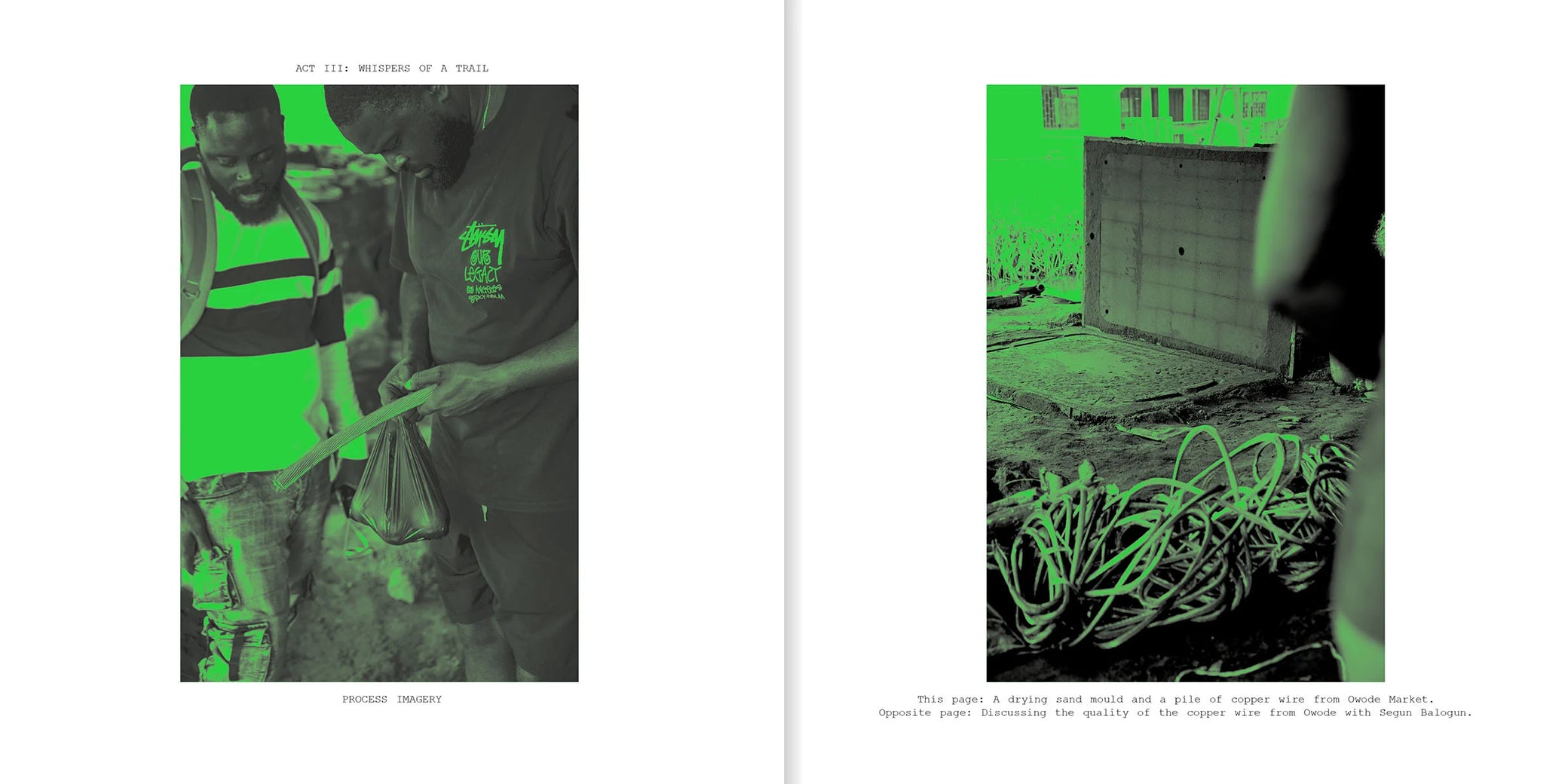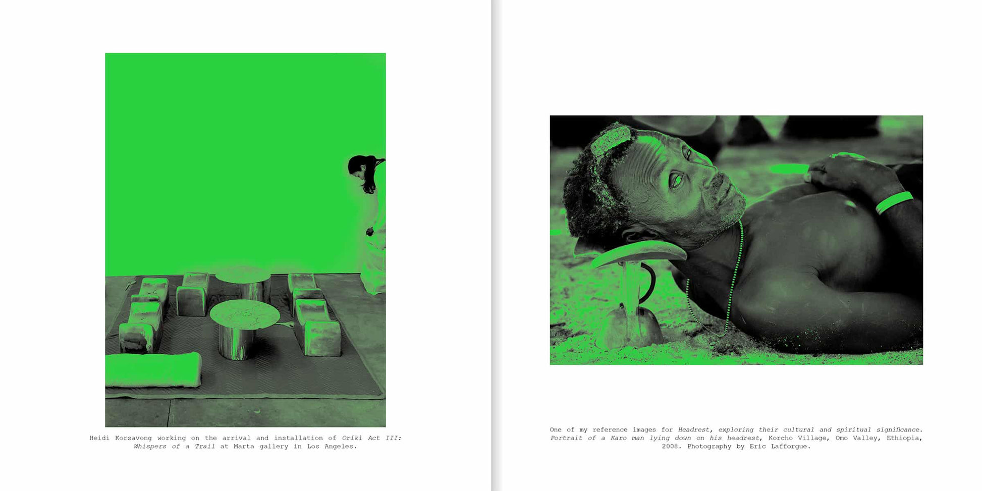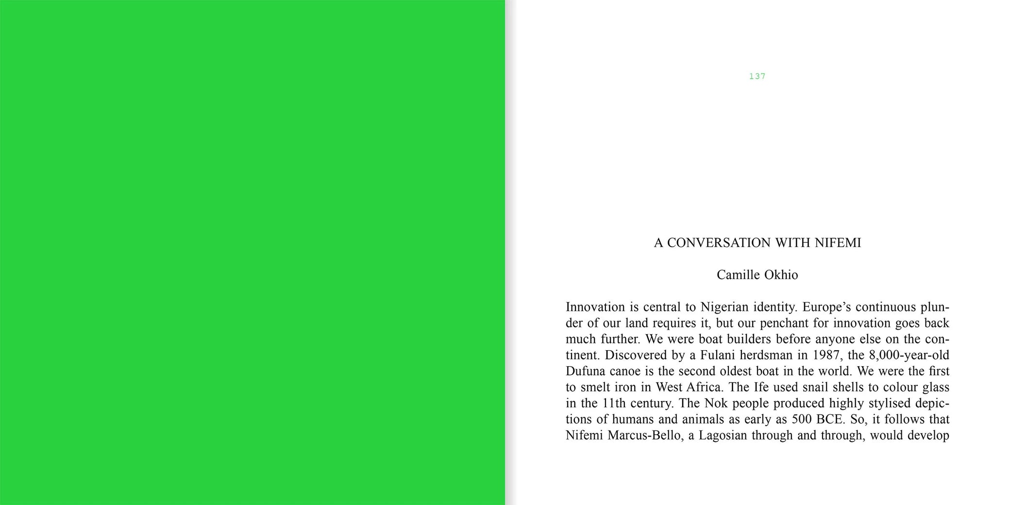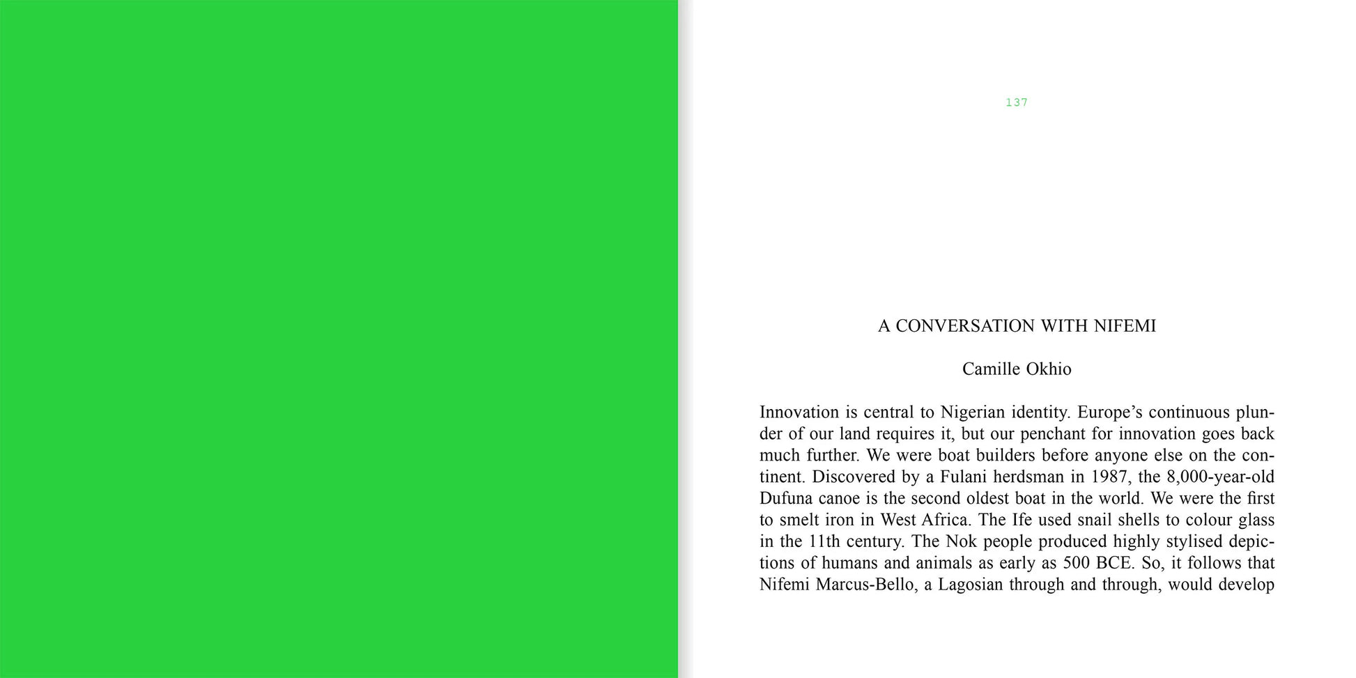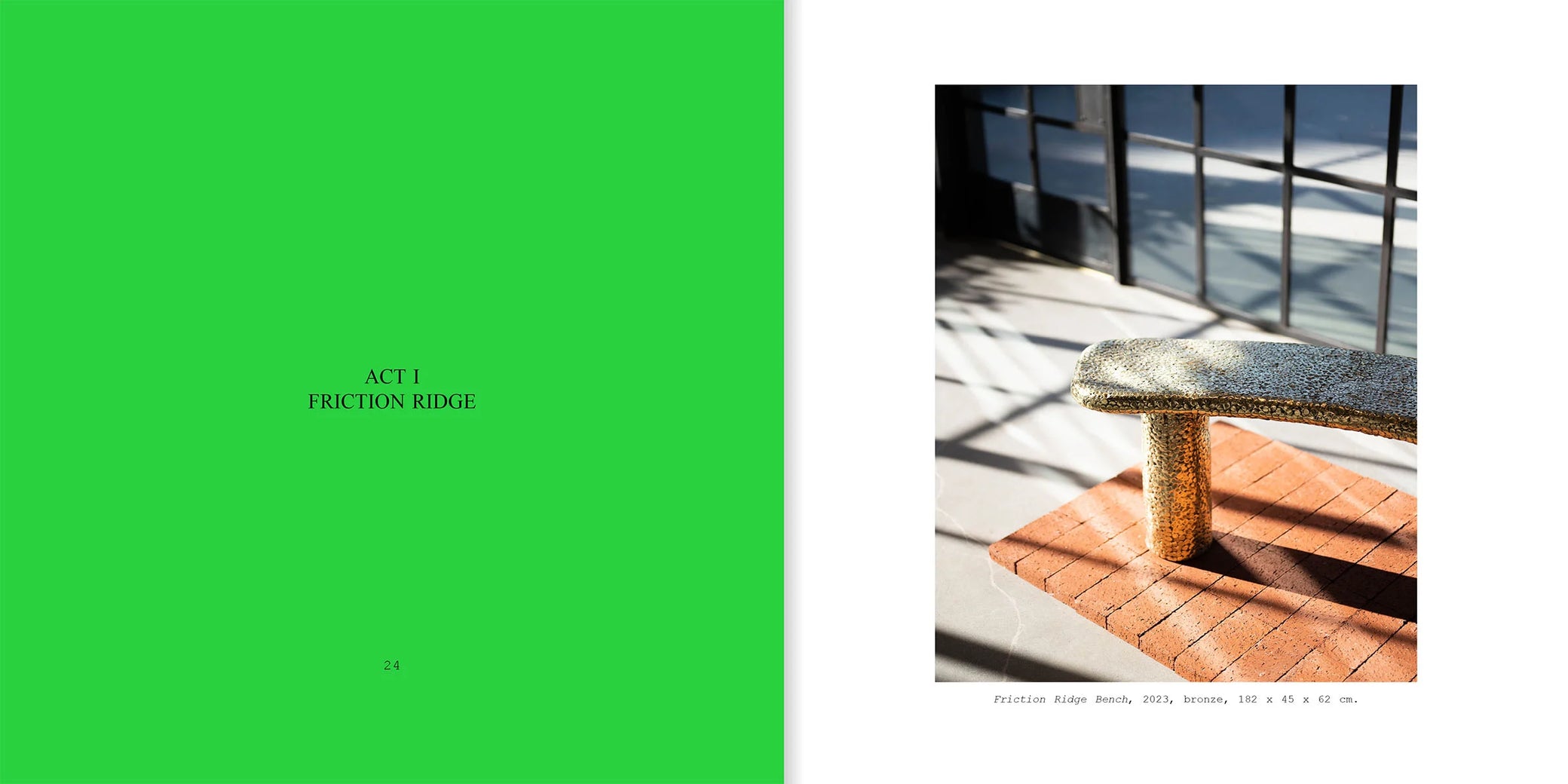 Oríkì: Material Affirmations in Three Acts è la monografia d'esordio dell'artista nigeriano Nifemi Marcus-Bello, che racchiude la sua serie scultorea in tre parti Oríkì, comprendente Act I: Friction Ridge, Act II: Tales by Moonlight e Act III: Whispers of a Trail, che esplora rispettivamente il bronzo, l'alluminio e il rame. Il libro include una prefazione di Eames Demetrios e saggi di Irene Sunwoo, Glenn Adamson e Rita Ouédraogo, oltre a un'intervista esclusiva con Camille Okhio. Intitolato Oríkì in riferimento alla pratica yoruba della poesia di lode, il volume include l'oríkì personale di Nifemi, composto da sua madre, Folake Marcus-Bello, nonché un saggio personale che ripercorre il suo sviluppo artistico dall'infanzia fino al presente. Oríkì: Material Affirmations in Three Acts include sia i ritratti a colori della serie, sia un diario fotografico delle immagini del processo e dell'archivio personale, svelando l'ispirazione e il percorso personale dietro le creazioni premiate di Nifemi, che incarnano il suo continuo dialogo tra materialità e identità. Oríkì: Material Affirmations in Three Acts si aggiunge alla crescente collezione di libri d'arte e design di Apartamento, insieme a Miguel Milá: A Life in Design, Arranging Things di Leonard Koren, Lucia Di Luciano & Giovanni Pizzo: Selected Works, Sam Chermayeff: Beasts e A Thing on a Table in a House di Serban Ionescu.