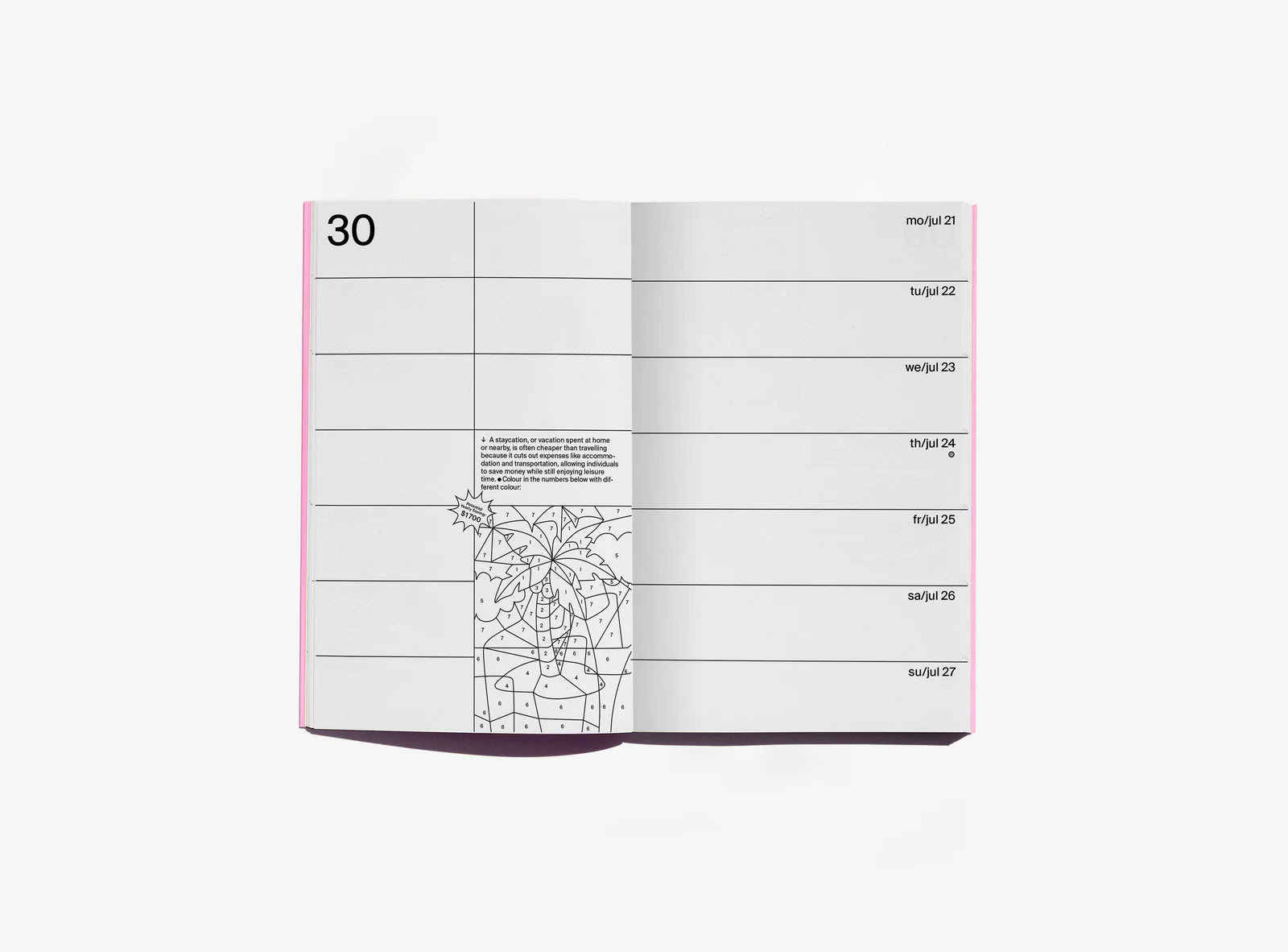 Questo calendario include attività che aiutano a rilassarsi, come il disegno, noto per i suoi effetti meditativi e rilassanti. Inoltre, contiene strumenti per analizzare le spese, giochi divertenti e consigli efficaci per ridurre le spese, consentendo di risparmiare una discreta quantità di denaro con un po' di organizzazione e pianificazione.