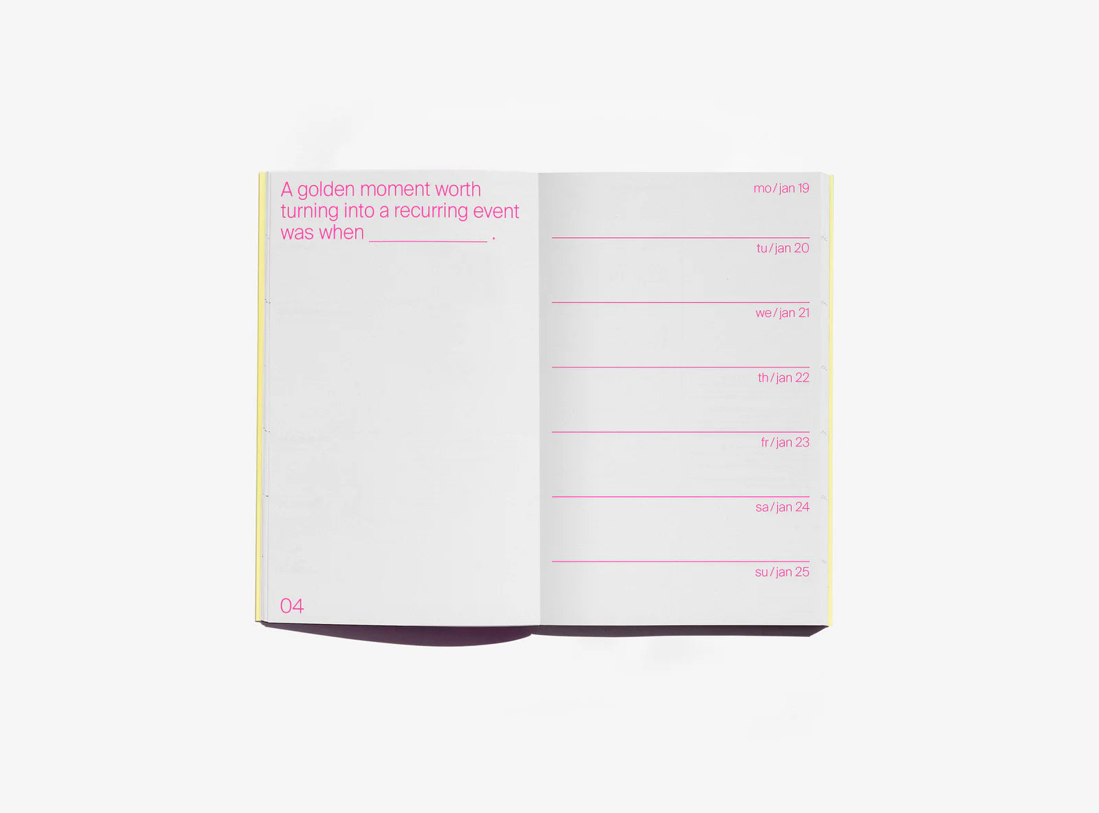 Questa agenda di Edition Julie Joliat combina funzionalità e creatività per accompagnarti tutto l'anno. Con layout intuitivo e ampio spazio dedicato a liste di cose da fare e appunti, organizzare la tua settimana diventa semplice e piacevole. La vera sorpresa? Ogni settimana include una frase con spazi vuoti da completare, pensata per stimolare l'auto-riflessione e accendere conversazioni leggere. Scopri talenti nascosti e lasciati sorprendere da domande divertenti mentre pianifichi. Un compagno affidabile e spiritoso per il 2026, dove praticità e umorismo si incontrano.