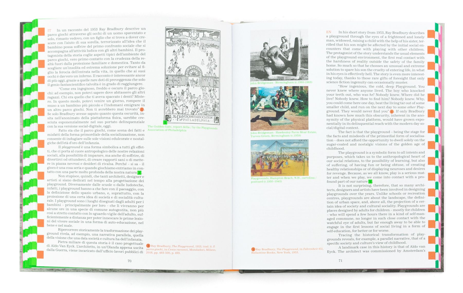Playgrounding esplora il significato dei parchi giochi anche attraverso molte immagini d’autore: dalle fotografie di Stefano Cerio e Fujio Kito a quelle provenienti dagli archivi digitali delle principali biblioteche del mondo, passando per gli scatti di grandi autori sul tema delle giostre.