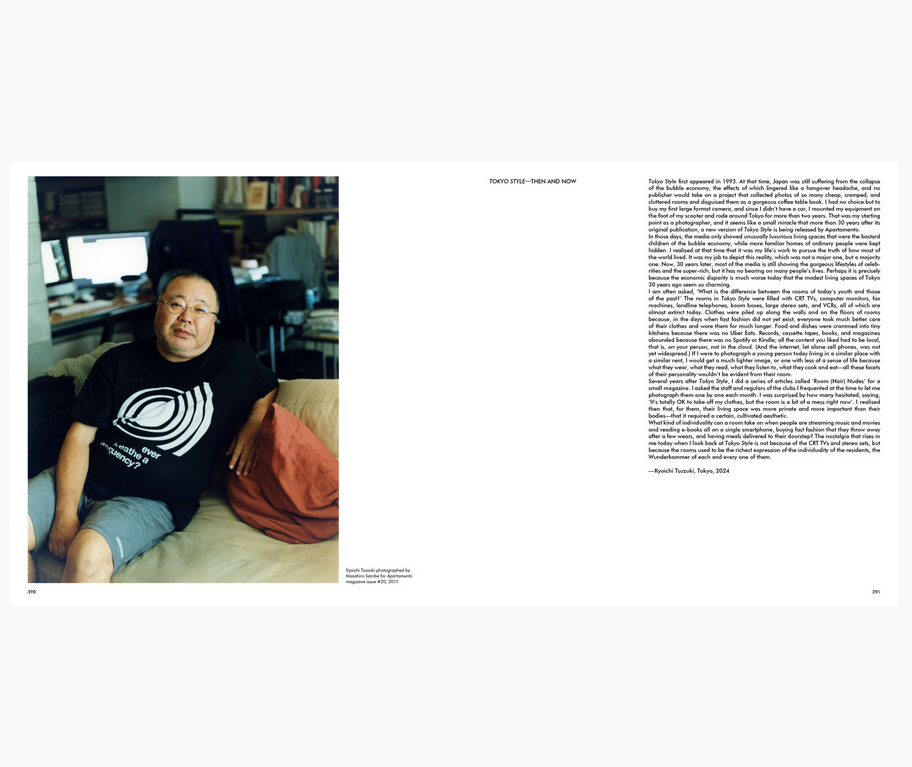A più di tre decenni dalla sua pubblicazione originale, questa nuova edizione di Tokyo Style fa rivivere un classico di culto e un oggetto da collezione. Le fotografie senza tempo di Kyoichi Tsuzuki offrono uno sguardo intimo sulle case di Tokyo così come sono realmente abitate, presentate qui con un design rinnovato che conserva il generoso formato del libro originale. Una selezione delle immagini iconiche del libro culmina in una nuova postfazione di Kyoichi che svela la nostalgia suscitata dal suo lavoro, che cattura un mondo analogico di ricca espressione personale. La prefazione dello scrittore Barry Yourgrau, amico di lunga data di Kyoichi, medita sui nascondigli "disordinati e prodigiosamente disordinati" di Tokyo, pieni di ogni cosa "dal volgare al bizzarro, dal funky al kawaii ("carino" in giapponese)".