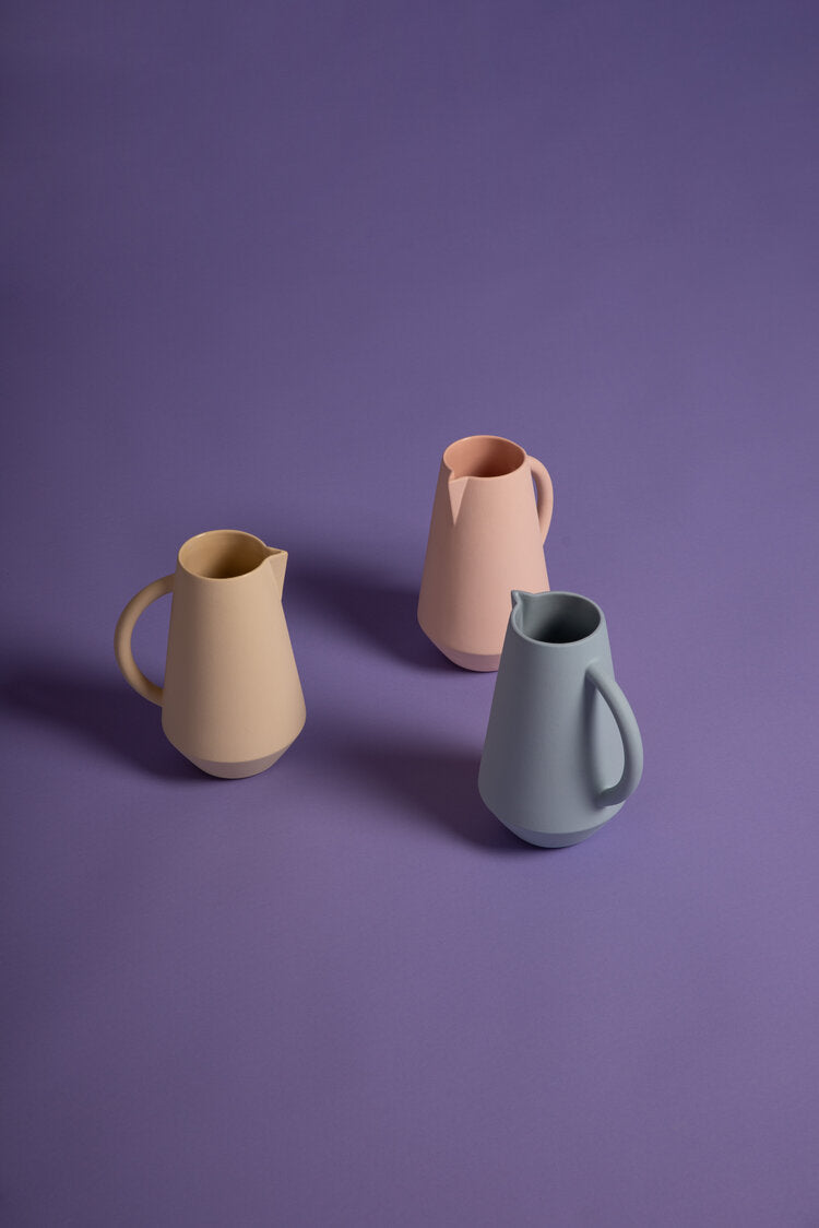 The Unison set is a carefully handcrafted ceramic tableware collection that puts your favourite food in a perfect limelight. The collection consists of seven differentpieces, each of which is dyed with pigments of refinedsubdued tones. By leaving the outer surface untreated and raw, the pieces get a soft tactile feel while the inside is glazed and shiny, enhancing a visual contrast of the tableware. Through a clear and graphical language, the parts can be stacked into each other to form a sculptural object, bringing a new perspective on simple everyday products.
