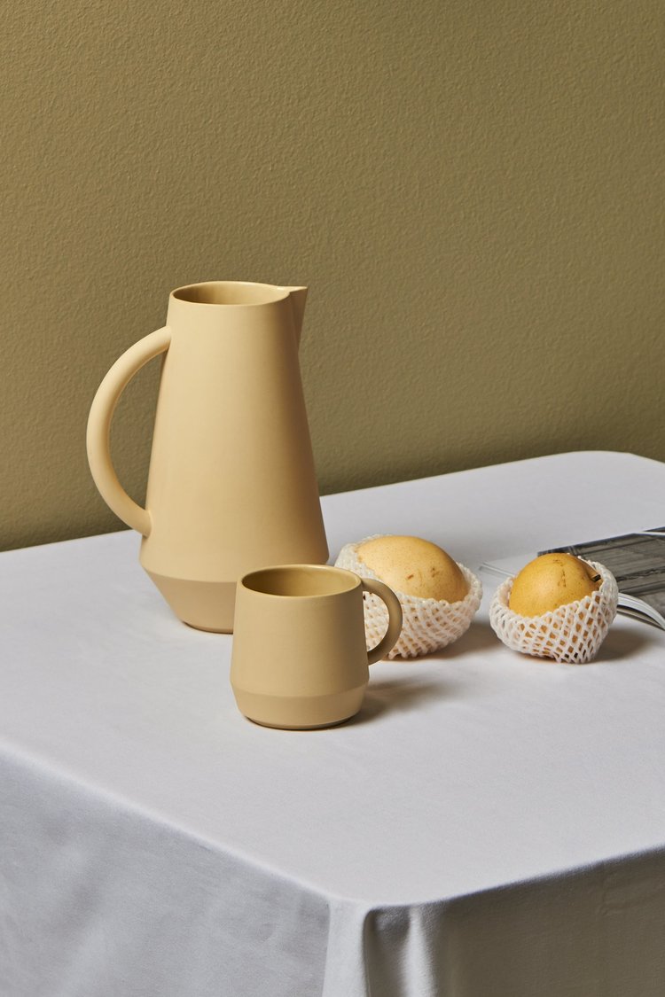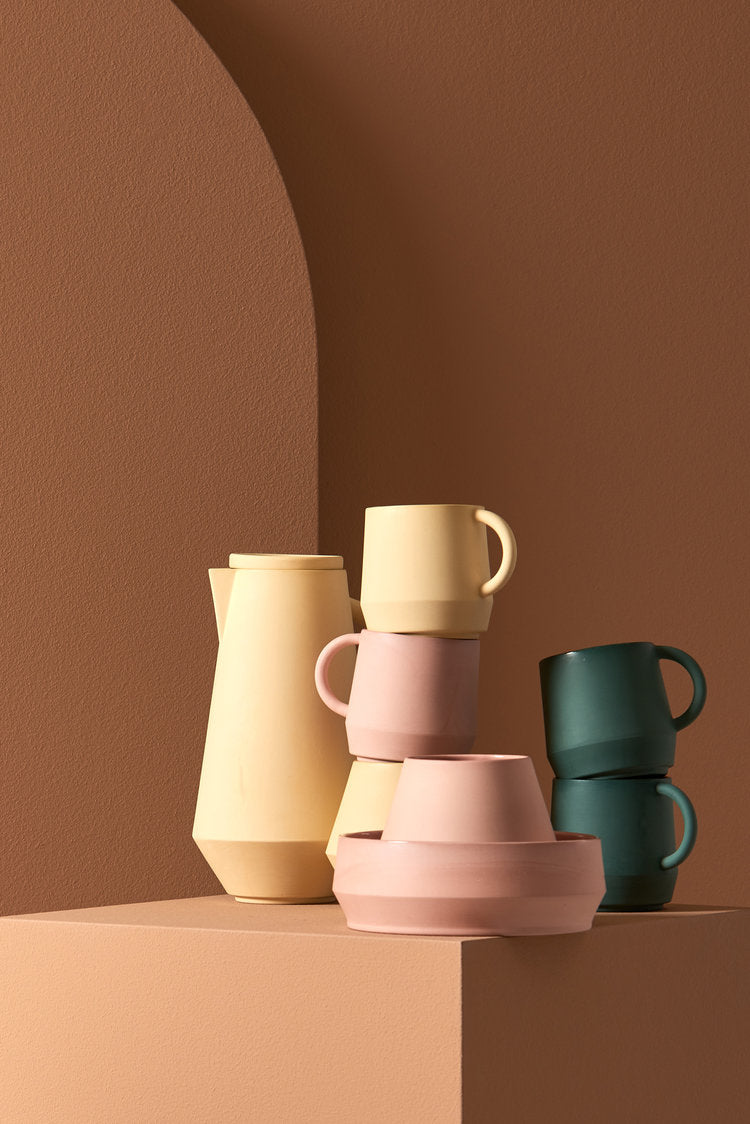 The Unison set is a carefully handcrafted ceramic tableware collection that puts your favourite food in a perfect limelight. The collection consists of seven differentpieces, each of which is dyed with pigments of refinedsubdued tones. By leaving the outer surface untreated and raw, the pieces get a soft tactile feel while the inside is glazed and shiny, enhancing a visual contrast of the tableware. Through a clear and graphical language, the parts can be stacked into each other to form a sculptural object, bringing a new perspective on simple everyday products.