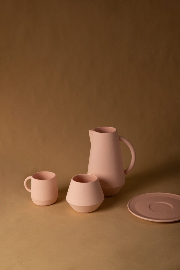 The Unison set is a carefully handcrafted ceramic tableware collection that puts your favourite food in a perfect limelight. The collection consists of seven differentpieces, each of which is dyed with pigments of refinedsubdued tones. By leaving the outer surface untreated and raw, the pieces get a soft tactile feel while the inside is glazed and shiny, enhancing a visual contrast of the tableware. Through a clear and graphical language, the parts can be stacked into each other to form a sculptural object, bringing a new perspective on simple everyday products.